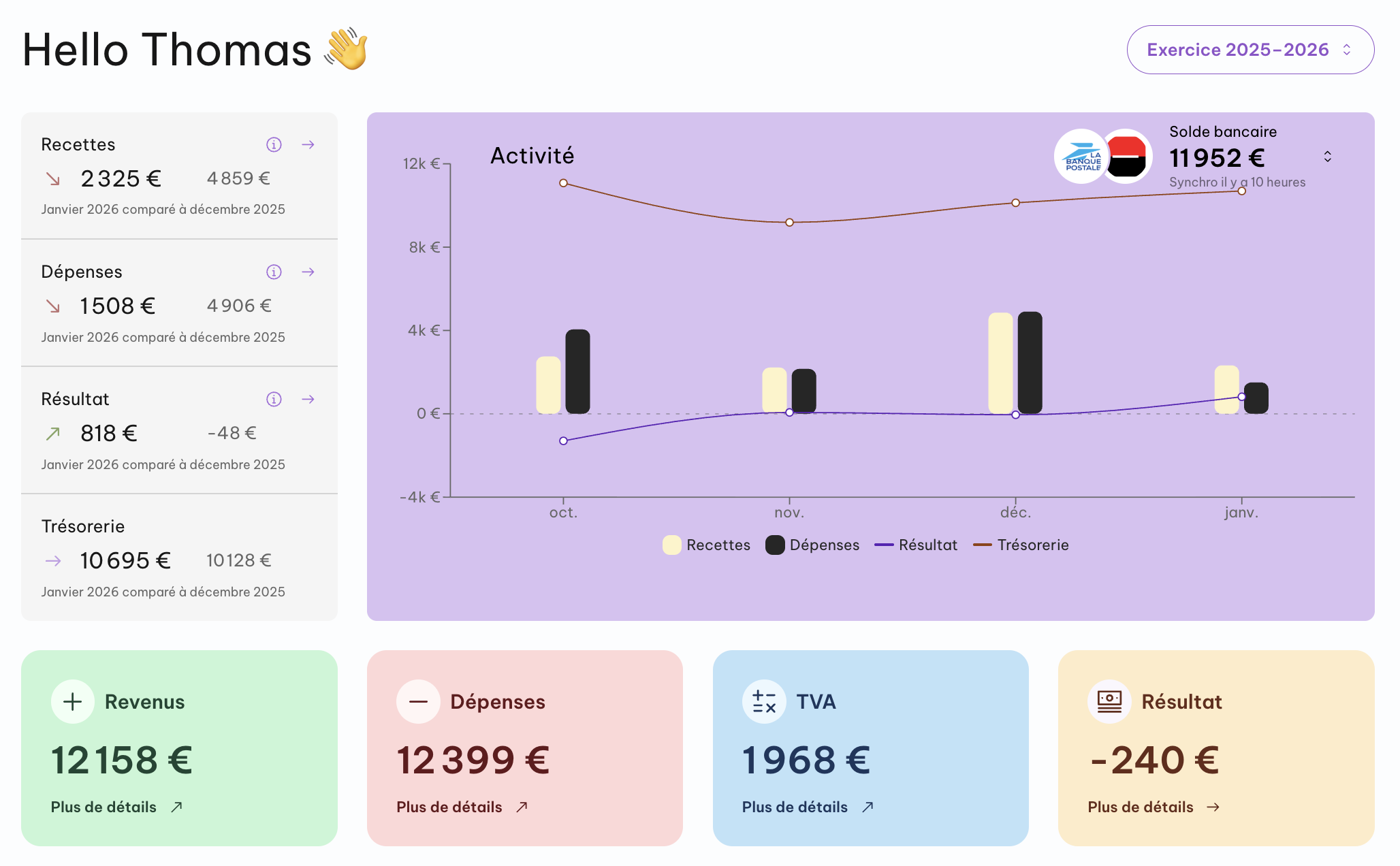 Votre compte de résultat vous montre, jour après jour, l'évolution de votre bénéfice. Bien utile pour savoir quand et combien vous rémunérer.