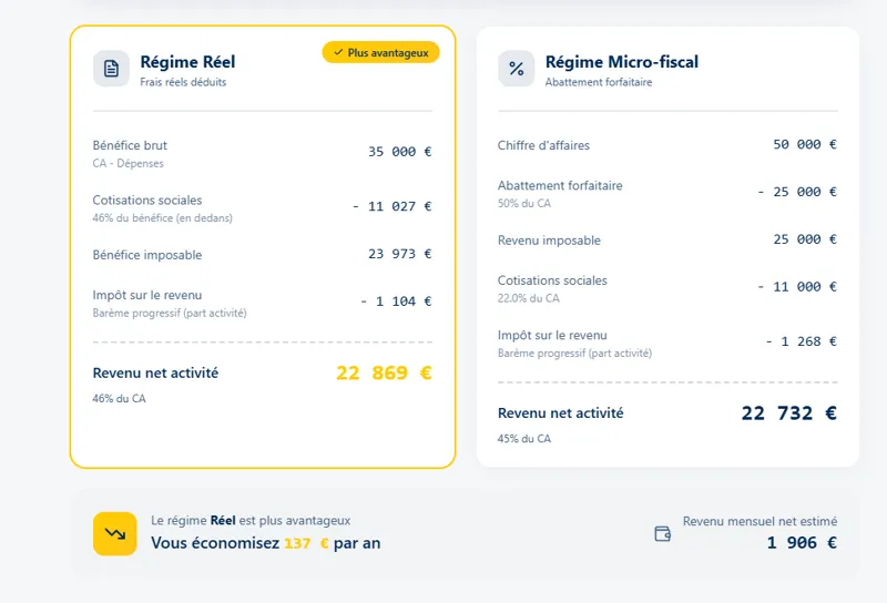 Exemple 2 : Un célibataire exerçant une profession libérale avec 60 000 euros de recettes. Avec le barème progressif, il paierait environ 6 000 euros d'impôt, tandis qu'avec le versement libératoire, il ne paierait que 1 320 euros, soit une économie significative.